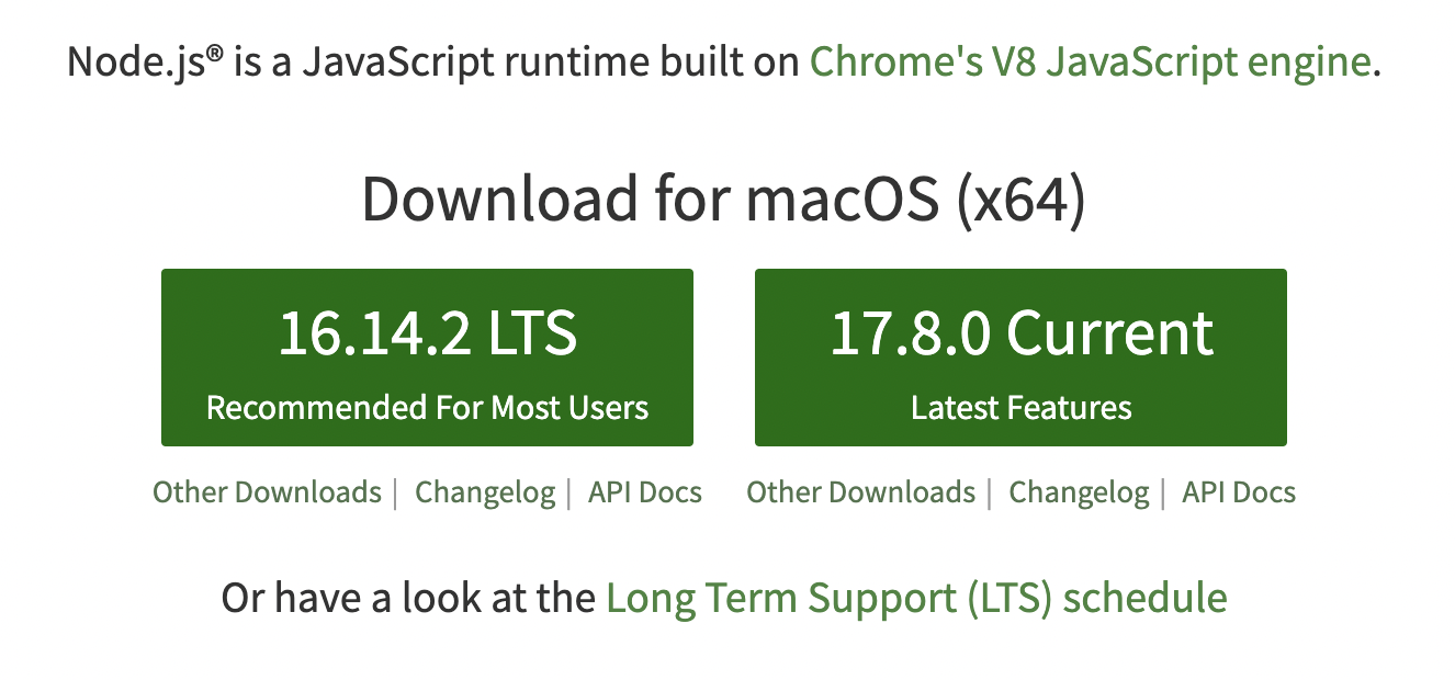 보통은 LTS 버전을 많이 쓰니까 나는 LTS 버전을 다운로드하였다.
