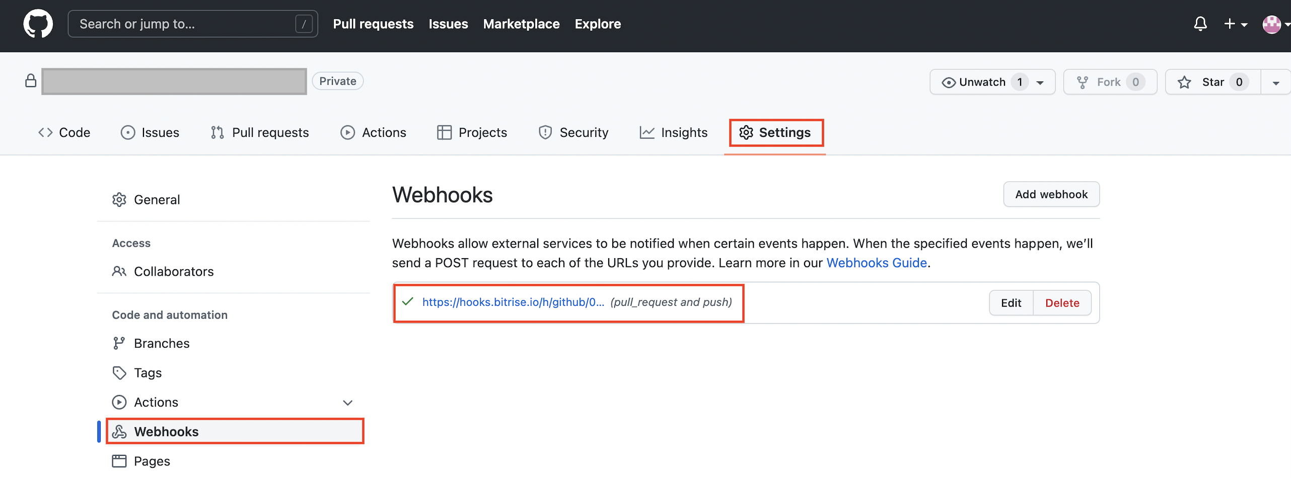 자동화가 다 되었으니 마지막으로 github에 Pull Request 가 일어났을 때, Webhook으로 Event를 받아서 bitrise에서 자동으로 빌드가 시작되도록 해보자.