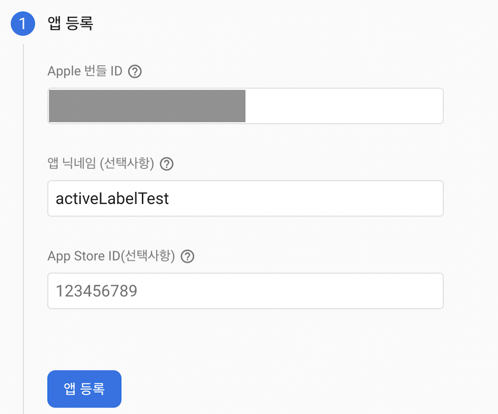 1) 앱 번들 id 입력하고 이름 생성