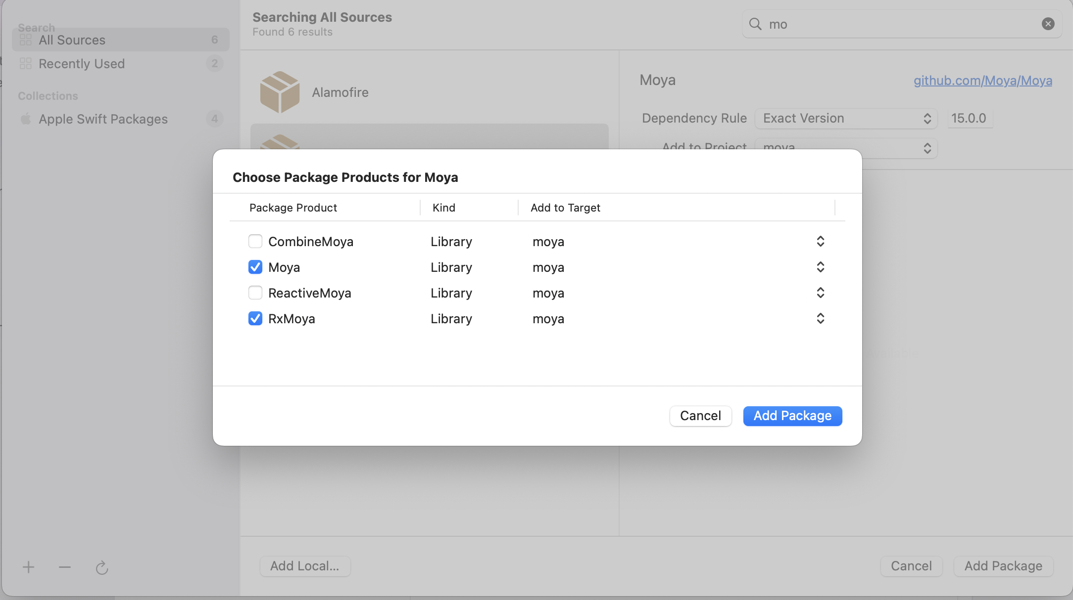 1. 우선 SPM 에서 Moya 를 추가해준다.