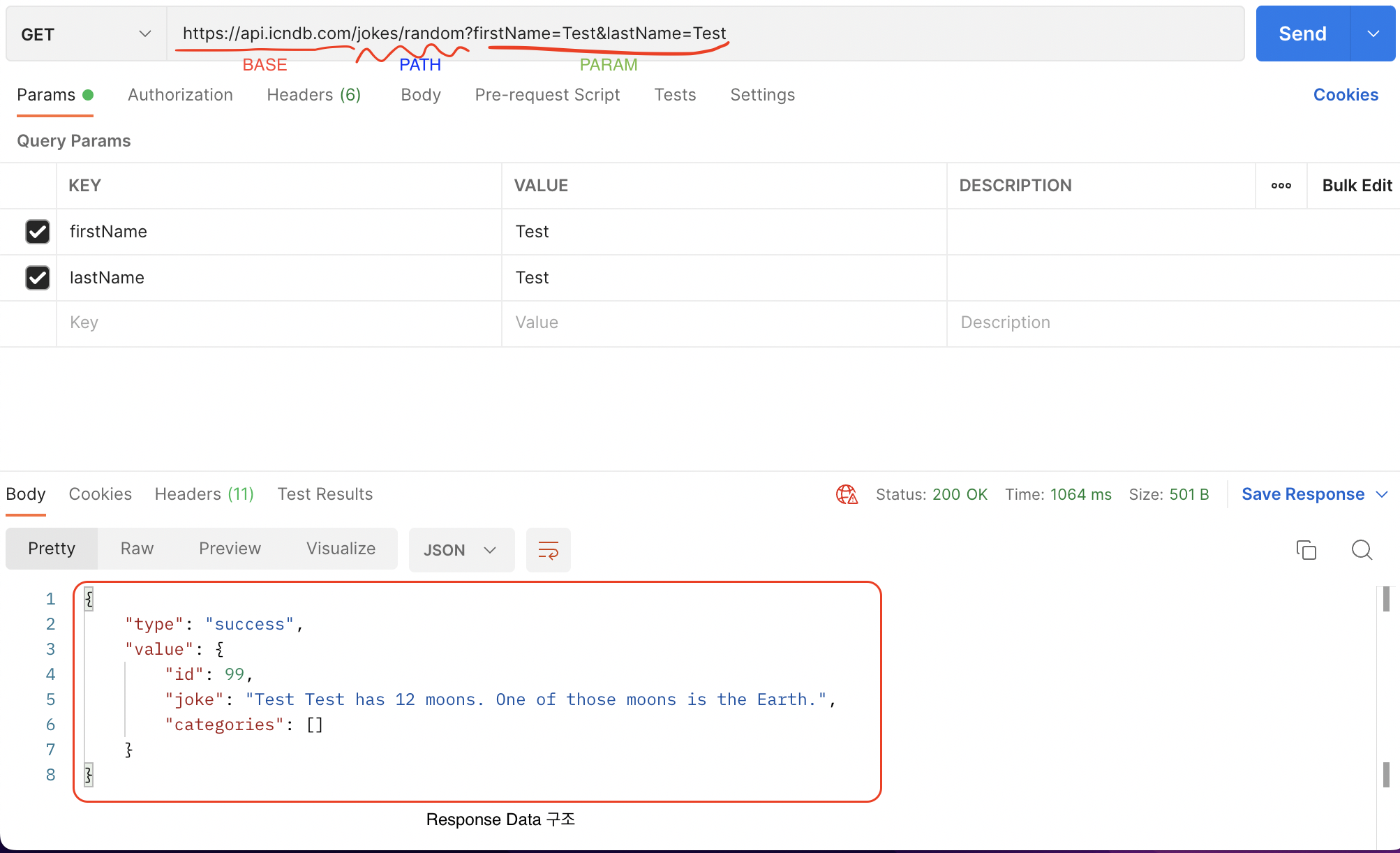 이번에 사용할 API는 api.cndb.com 에서 제공하는 조크를 랜덤으로 응답해 주는 API 다.
