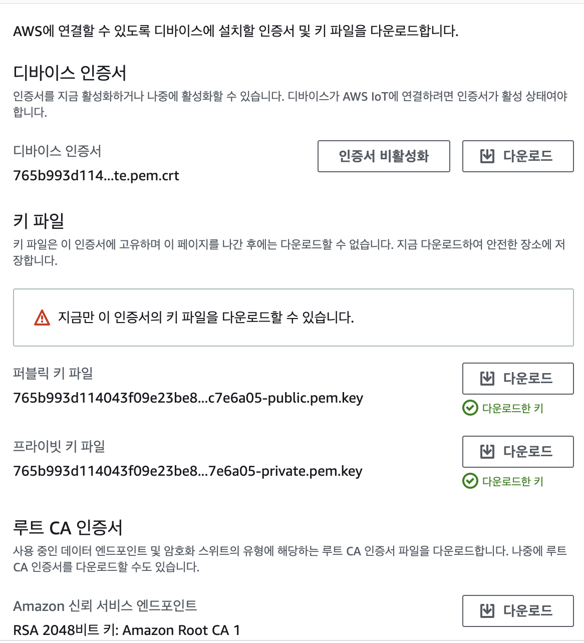 보통 private key file 만 필요 하긴 한대 public key도 일단 같이 다운로드한다.