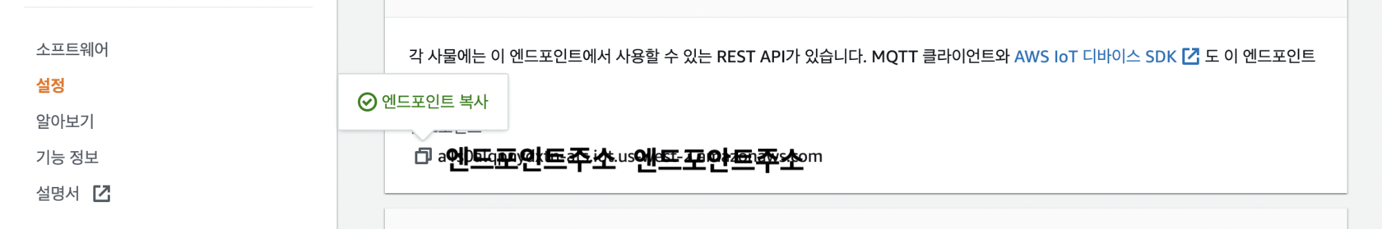 4) 마지막으로 엔드포인트를 복사한다.