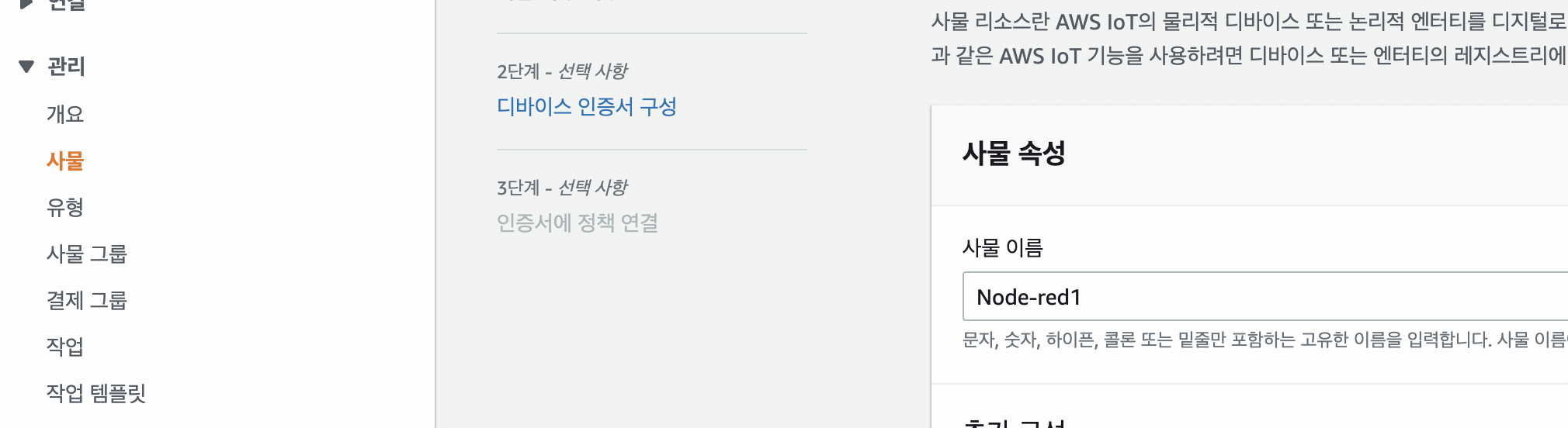 1) 관리 -> 사물 -> 단일 사물 생성